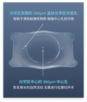 光学部中心360㎛小孔 不阻碍房水流动, 消除青光眼诱发可能性 无需虹膜切开术