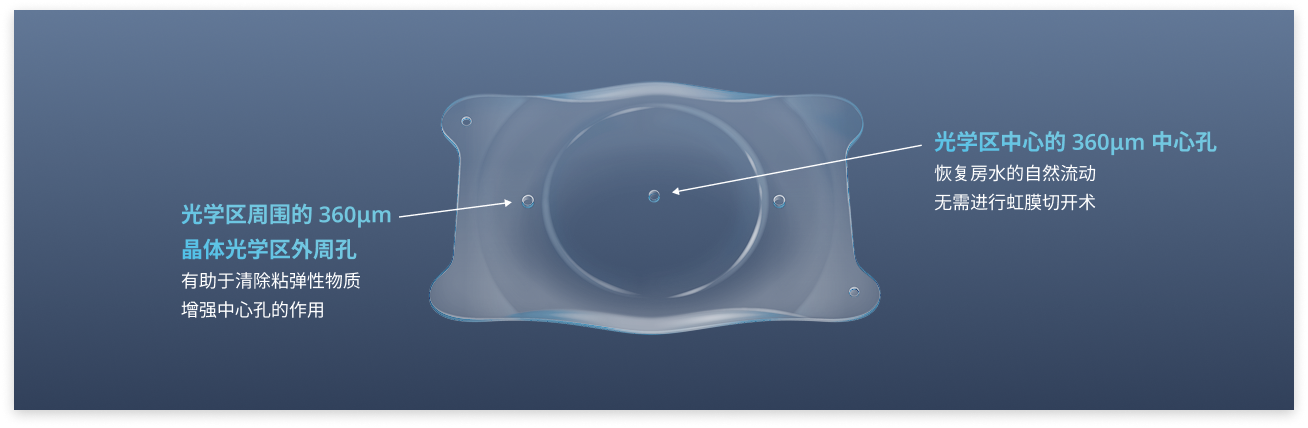 光学部中心360㎛小孔 不阻碍房水流动, 消除青光眼诱发可能性 无需虹膜切开术